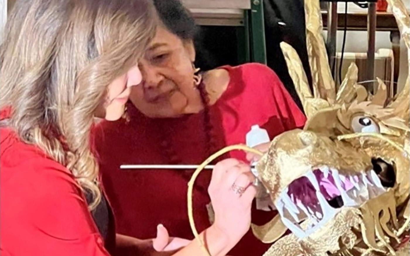 Residents of The Forum at Rancho San Antonio spent four months making a 12-foot-long dragon from old bubble wrap, grocery bags, pillowcases and toilet paper rolls. The work honors the Year of the Dragon.