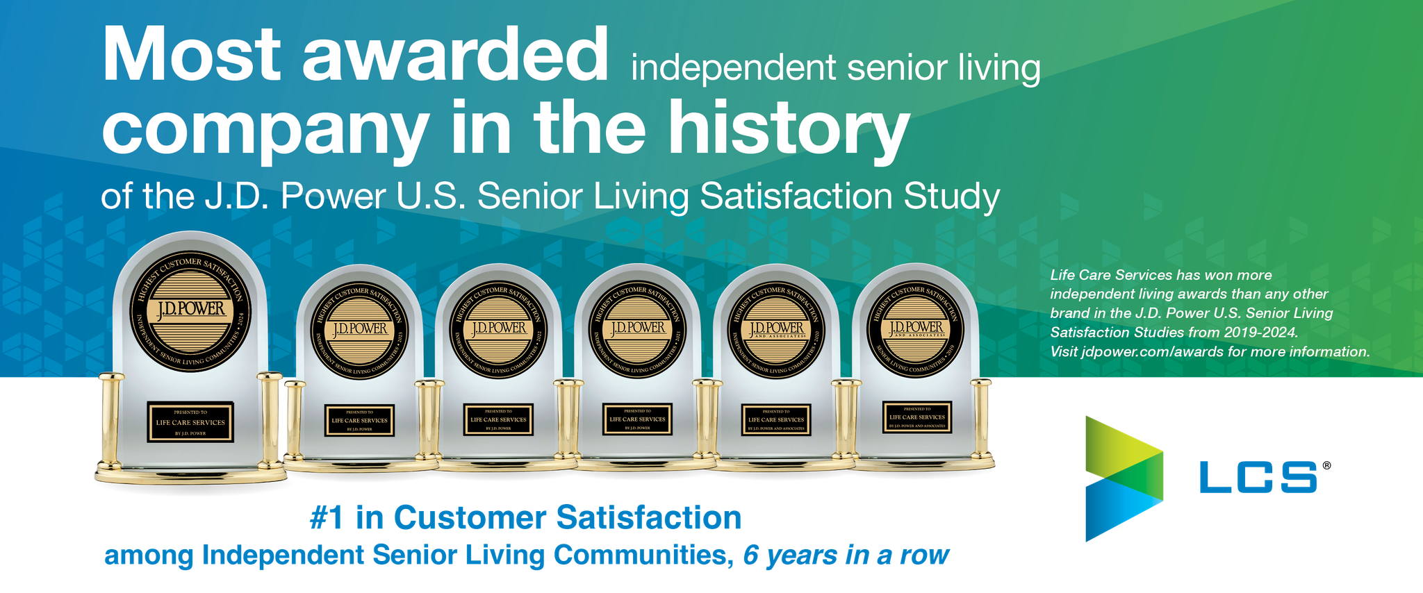 Life Care Services, An LCS® Company, has the experience to boost community financial performance, increase occupancy, and develop new lifestyle and health initiatives to meet consumer expectations and help communities thrive. As the nation’s fourth-largest operator of senior living communities, we provide innovative solutions to more than 130 communities and serve over 40,000 seniors. Life Care Services has also ranked highest in customer satisfaction for six consecutive years among independent senior living communities in the J.D. Power 2024 U.S. Senior Living Satisfaction Study. The awards make Life Care Services the most awarded Senior Living Provider in the nation. For more information, visit lifecareservices.com.